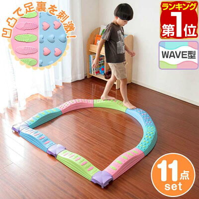【バランス平均台】★こちらも上記バランスストーンと同様、保育園で人気のおもちゃです。波打っている分、少し難易度が上がりますが、手を添えれば1歳児から十分楽しく遊べます。